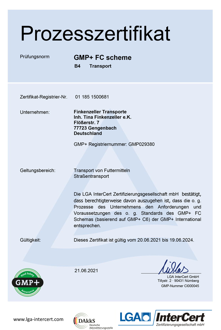 Selbstverständlich sind wir nach GMP+B4.1 für den Transport von Futtermitteln zertifiziert.